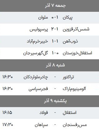 صدرنشینی سپاهان و تعقیب پرسپولیس درپایان هفته 13 لیگ برتر +جدول